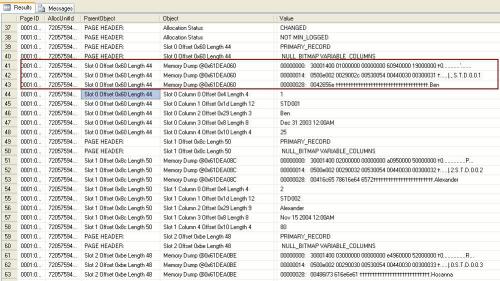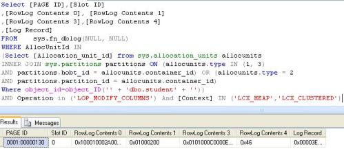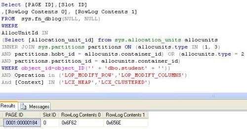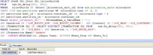 SELECT [PAGE ID],[Slot ID],[AllocUnitId]