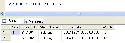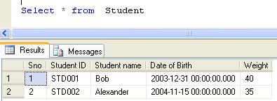 Insert into dbo.[Student] values (1,'STD001','Bob','2003-12-31',40)