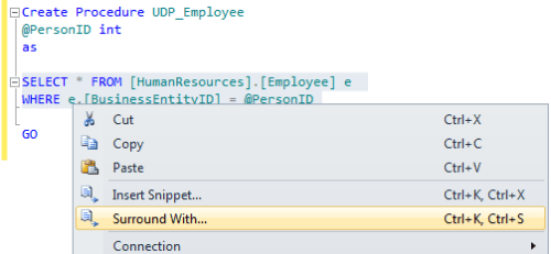 SQL server 2012 introduced a new feature namely “Surrounded With” that can reduce the development time and increase the accuracy level in SQL SERVER.