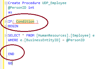 In the previous version of SQL server (2005 & 2008), if we had to do a customization/development in any procedure/function and add few conditions in it, we had to first insert the condition with BEGIN in a certain place and then had to insert an END at an appropriate place.