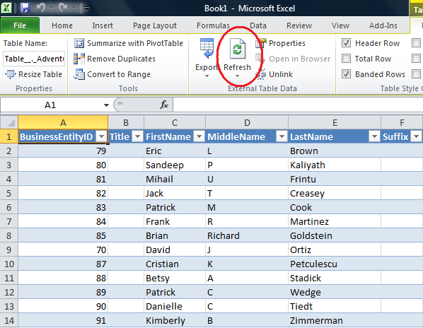 Now, we have the data and beauty is that, whenever you press refresh button, excel refreshes the data from SQL Server and displays the up to date data in excel. Now, you can do pivot and other reporting stuff with this data in few minutes.