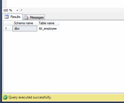 --This script is compatible with SQL Server 2005 and above. USE tempdb GO --Create Schema CREATE SCHEMA HumanResources GO --Create Table CREATE TABLE HumanResources.[tbl_Employee]( [Sno] [int] NOT NULL, [ID] nvarchar(6) Not NULL , [name] [varchar](50) NOT NULL, [Date of Birth] datetime not null, [Weight] [int] NULL) GO --Create View Create View HumanResources.[vw_Employee] as Select * from HumanResources.[tbl_Employee] GO --Create Procedure Create Procedure HumanResources.[usp_Employee] @EmployeeID nvarchar(6) as Select * from HumanResources.[tbl_Employee] Where [ID] =@EmployeeID GO --Create function Create FUNCTION HumanResources.[fn_Employee](@EmployeeID nvarchar(6)) RETURNS int AS Begin Declare @Weight int Select @Weight = [Weight] from HumanResources.[tbl_Employee] Where ID =@EmployeeID Return @Weight End GO --Create Trigger CREATE TRIGGER HumanResources.trg_Employee ON [tbl_Employee] FOR INSERT AS RAISERROR (50009, 16, 10) GO --Drop all objects DROP TRIGGER HumanResources.trg_Employee DROP VIEW HumanResources.[vw_Employee] DROP PROCEDURE HumanResources.[usp_Employee] DROP FUNCTION HumanResources.[Fn_Employee] DROP TABLE HumanResources.[tbl_Employee] GO
