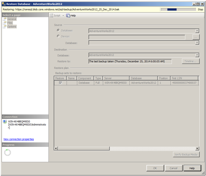 Step 2 – RESTORE backup to URL :