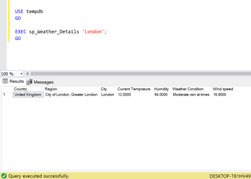 - SQL Server – How to check weather of any location using API