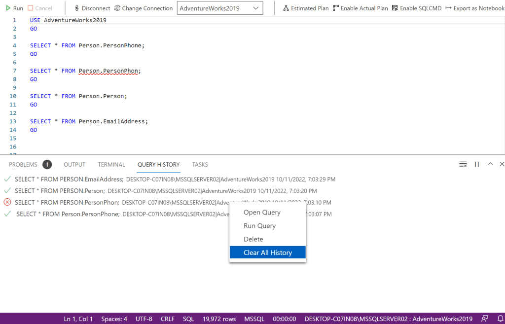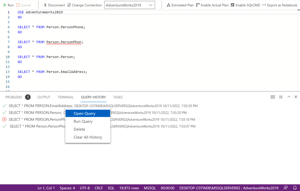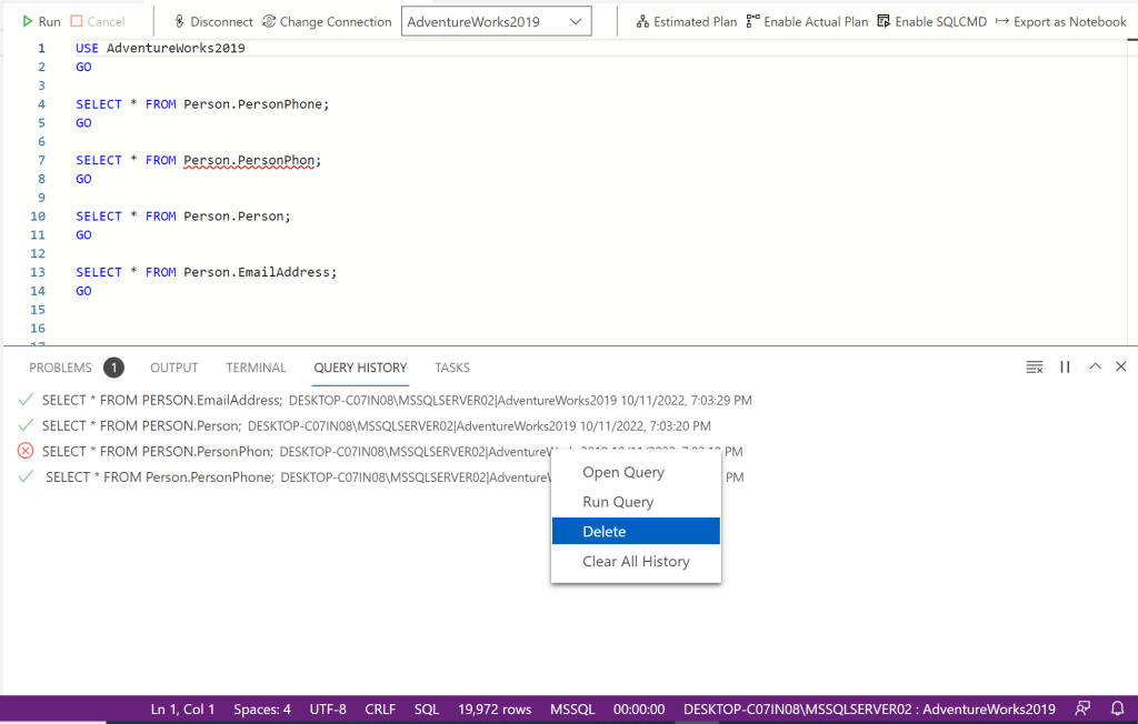 Since we installed and configured the extension, let’s compare the schema of two databases in the SQL Server connected in the earlier steps.