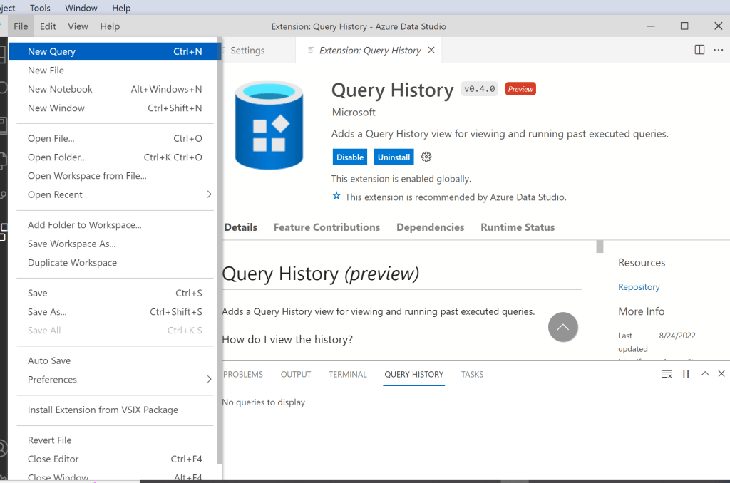 As we can see SQL Server Schema Compare extension is installed now and it is ready to use.