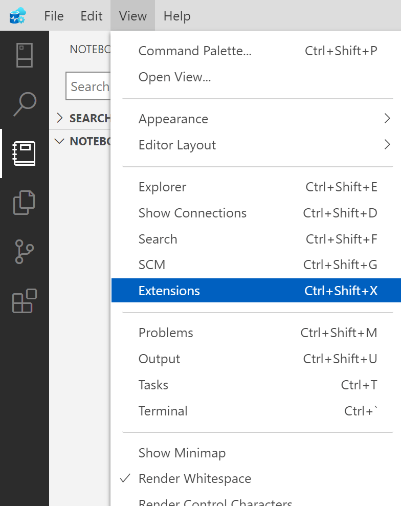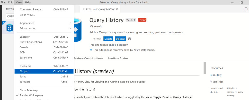 You need to open Azure Data Studio, then click on View menu and then click on Extensions or use shortcut CTRL+SHIFT+X as shown below.