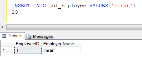 USE tempdb; GO CREATE TABLE tbl_Employee( EmployeeID int identity (1,1), EmployeeName nvarchar(100) NULL ) GO