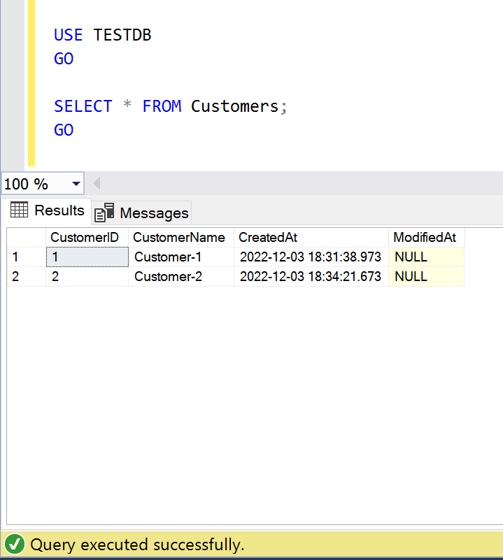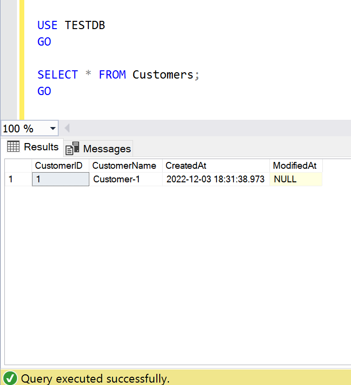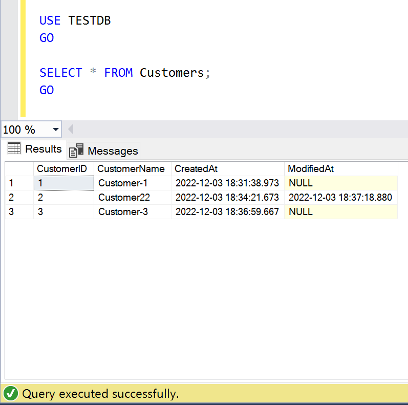 Now, we have successfully created the sample along with backups. Let me run the query and add this new column namely last_valid_restore_time as shown below. As we can see, the last_valid_restore_time & the last record modified date & time is same which is 2022-12-03 18:37:18.
