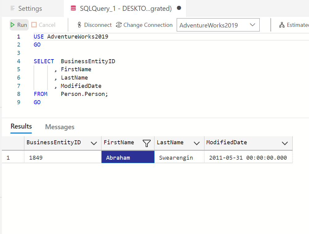 Now, in order to get data before the execution of update statement, we are going to check the last_valid_restore_time and restore the database before the last_valid_restore_time which will return the data before update of the table as shown below.