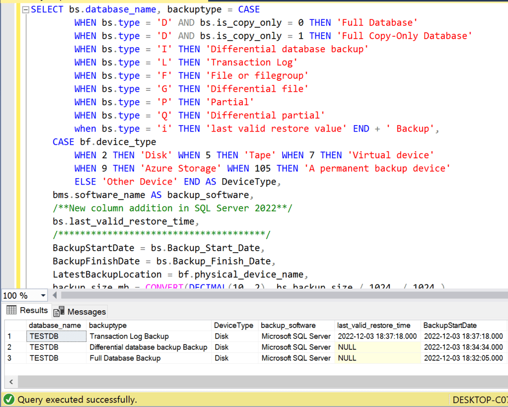 Last_valid_restore_time is very handy information when we want to know the last transaction date in the specified backup & would like to restore based on specific time. Do let me know, how were you tracking this time in earlier version of SQL Server 2022.