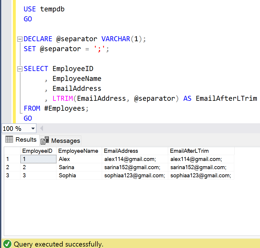 , RTRIM(EmailAddress, @separator) AS EmailAfterRTrim